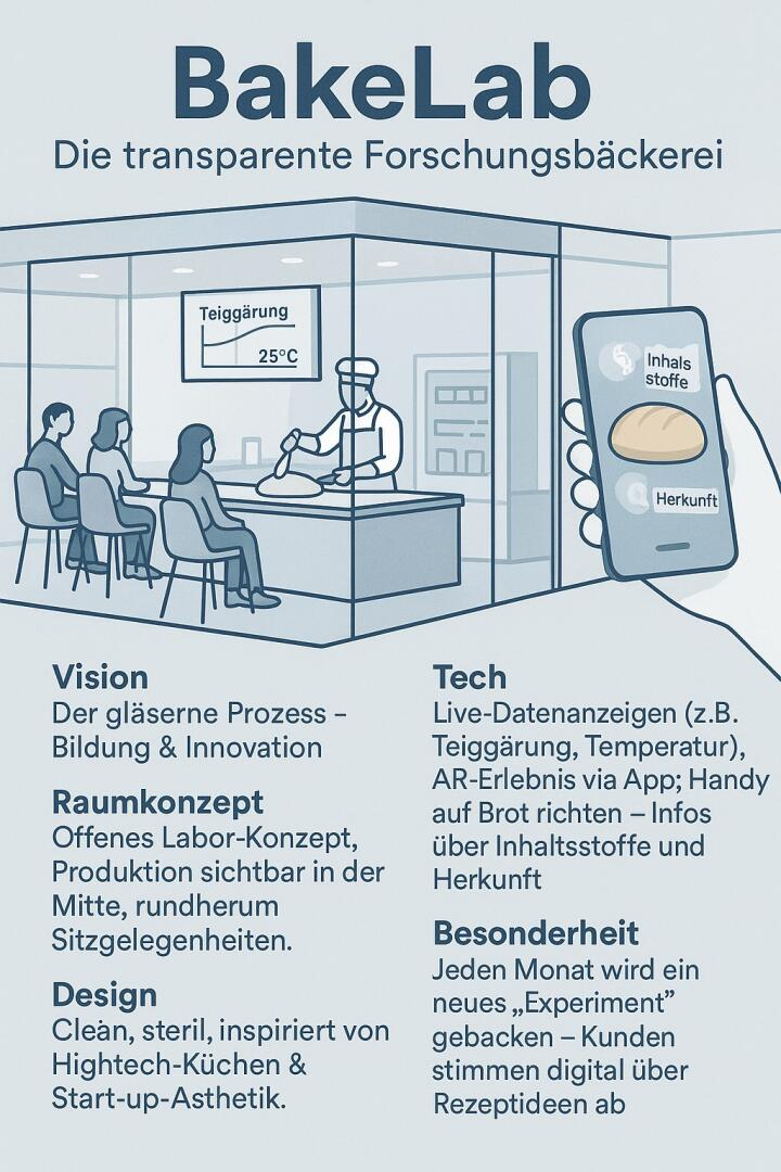 BakeLab is the transparent research bakery - a place where craftsmanship meets high-tech. In an open laboratory, customers can experience live how bread is made. With real-time data, AR experiences and monthly baking experiments, every visit becomes an interactive moment of learning and enjoyment.