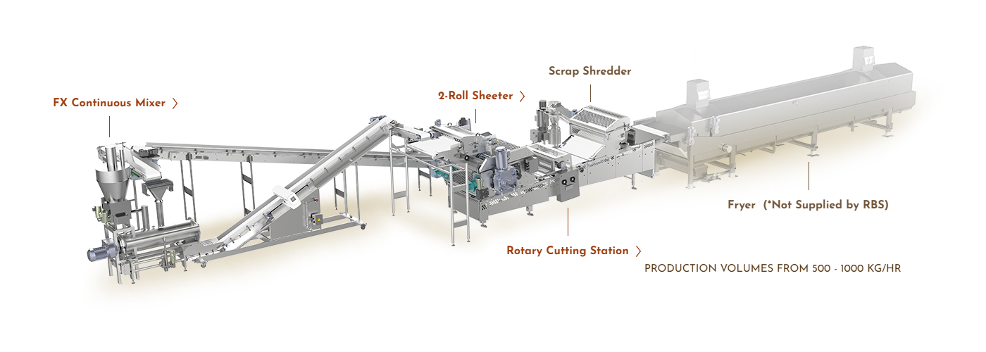 By combining modular design with advanced mixing and cutting technologies, RBS delivers a powerful, scalable solution for manufacturers of stackable fried chips.