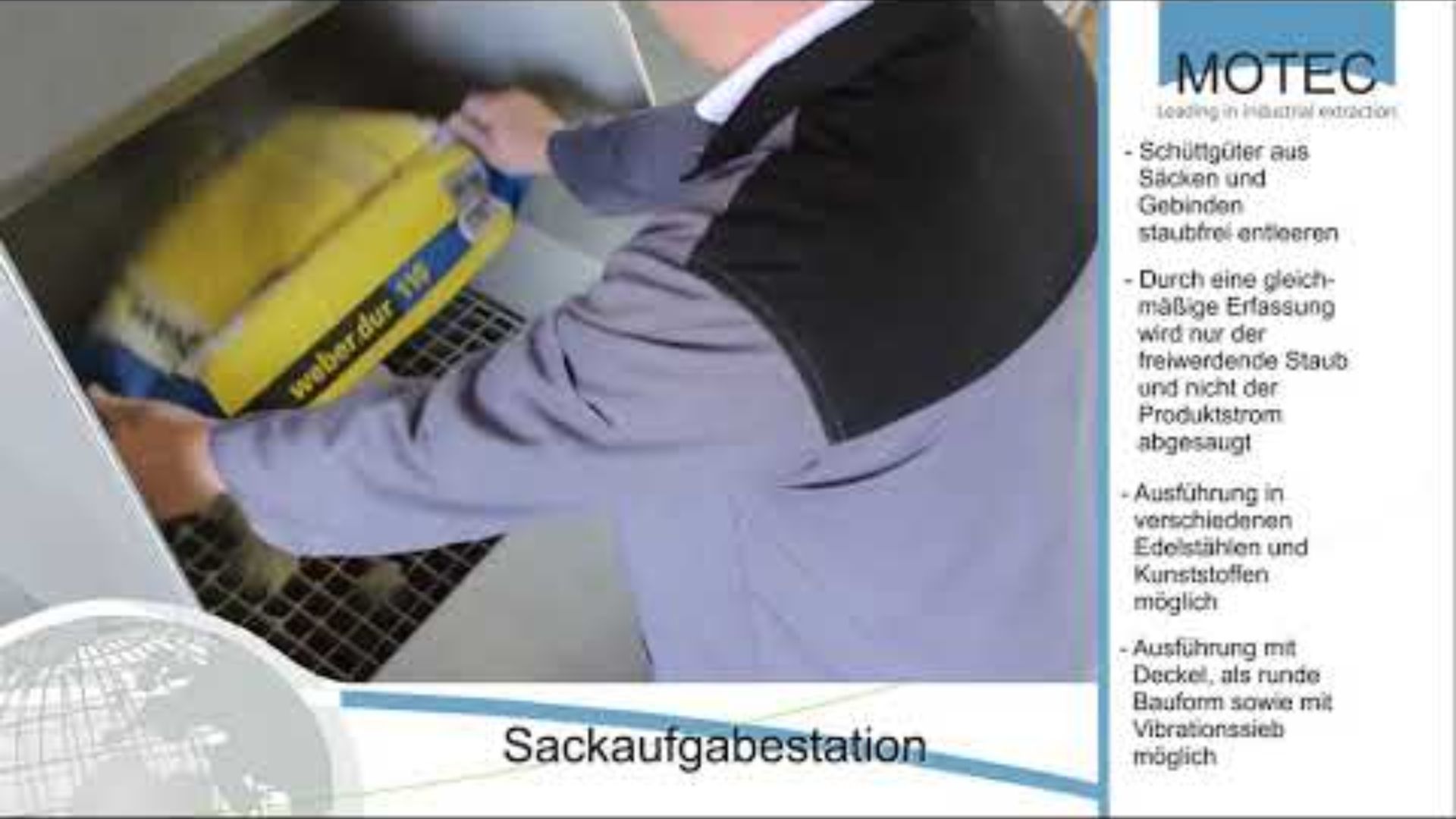 Emptying bulk goods from bags is a common practice in many industries. This often releases dust, which contaminates the environment as well as the breathing zone of the employee.